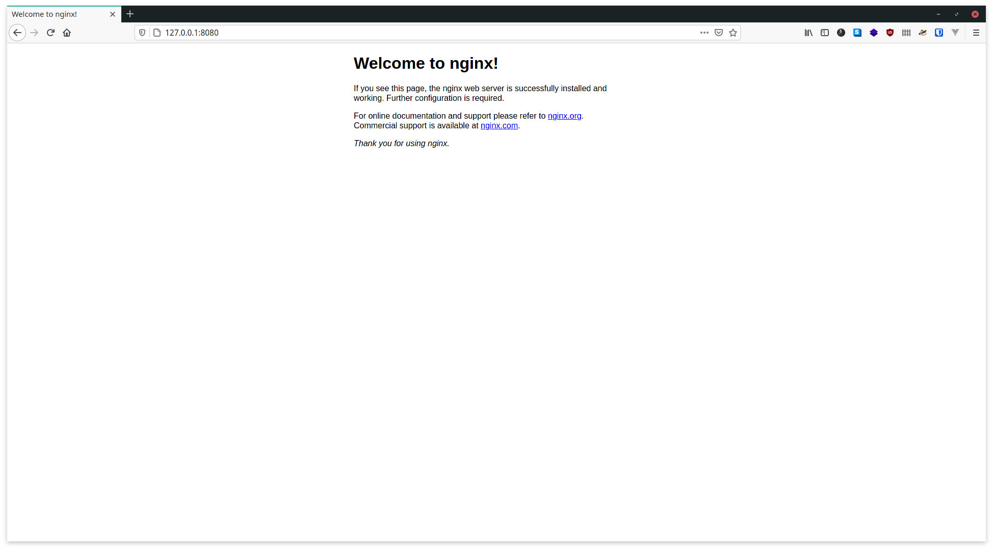 To verify, visit http://127.0.0.1:8080 and you should see the default response page.